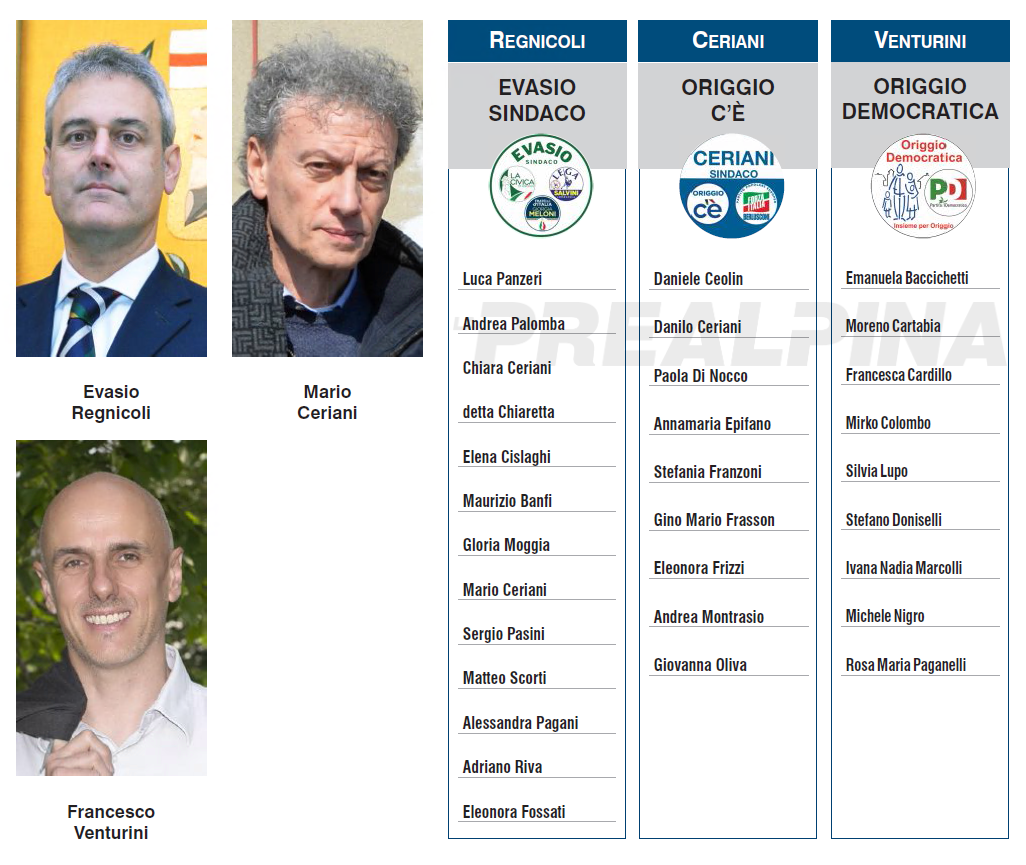 Sono Mario Ceriani, Evasio Regnicoli (sindaco uscente), e Francesco Venturini i candidati alle elezioni amministrative 2026 di Origgio. Gli elettori saranno chiamati al voto domenica 24 e lunedì 25 maggio.