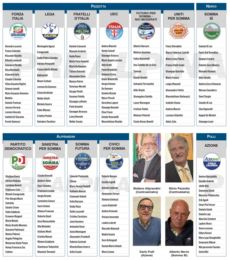 Sono Stefano Aliprandini, Alberto Nervo, Silvio Pezzotta e Dario Pulli i candidati alle elezioni amministrative 2026 di Somma Lombardo. Gli elettori saranno chiamati al voto domenica 24 e lunedì 25 maggio. L’eventuale ballottaggio si terrà il 7 e l’8 giugno.