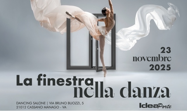 Una serata in cui l’arte del costruire ha incontrato l’arte del muoversi. Domenica 23 novembre, presso il Dancing Salone di Cassano Magnago, si è svolto l’evento “La finestra nella danza”, organizzato da IdeaPorte di Gallarate, storico showroom di riferimento specializzato in chiusure, rivestimenti e design d’interni, guidato con passione da Alessandro e Jessica. Un progetto che ha unito architettura, design e danza in un racconto poetico fatto di luce, trasparenza e movimento.
